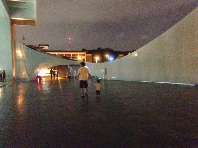 走入第二屆的X-site地景裝置,其實早在開展前一次再度回到《食物箴言》專展 (第二次回到此展還真兩光,是男人突然把先前的買票入館參觀當沒發生過,直到來到現場才記起原來已品味過種種諷刺性的美食,但既來之又安之,只好再度買票入內 --- 抓頭),看著美術館展外工程藩籬圍起,心知肚明變成年度性的X-site地景裝置即將開展,於是"現代藝術粉絲"的我們不免充滿期待,忙不迭地將展覽日期跟隨之特別企劃的"美術館星光夜” (X-site!ng =Architecture,表演藝術+建築裝置,週六夜特別活動) 統統裝進我們的iCalendar裡面 - 也期待著早過了嬰兒期的小童,多多少少也可以來跟我們夜生活一下 (當了爸媽後,時鐘超過9pm就叫夜生活 - 果然淡淡哀桑)。